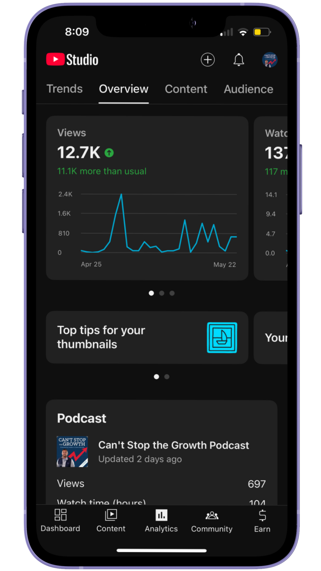 256.4 hours of watch time — 📈 up 537%